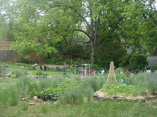 Mulberry Fields is an unique oasis hidden in Candler Park. It is located down an old city alley next to 1301 Iverson St. Come through the gate and follow the path. The acre of open meadow, mulberry grove and towering old pecan trees offer an accessible green space for recreation, environmental education, community building and organic growing. The garden also shelters neighborhood hawks, owls, bluebirds and a variety of woodpecker species. In the later part of the 1800’s Mulberry Fields was part of a dairy farm, and the oldest farm house was built on the west end of the property – it still stands today.